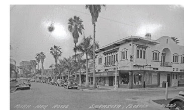 The Mira Mar Plaza was built in record time in 1922, at the start of ‘Florida Fever’ tourist boom. The largest apartment building that Sarasota had yet seen, it spans from 44 to 71 S. Palm Avenue with a hotel and auditorium constructed on site shortly after, Mira Mar signaled to the world that this piece of paradise had risen to ‘resort status.’